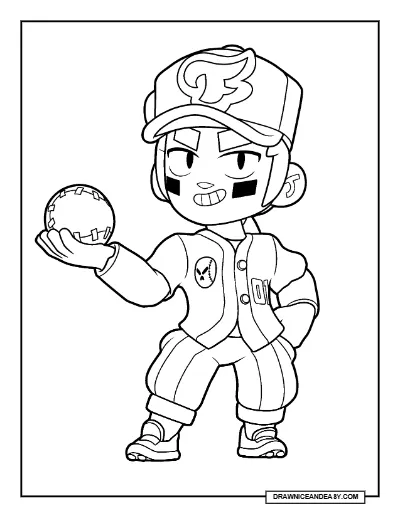 Free Blue Pitcher Fang Brawl Stars coloring page – printable PDF! Color the sporty baseball pitcher-themed Epic skin. A fast-pitching and fun Fang coloring sheet — download and print free for kids!