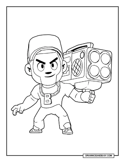 Boom Box Brock is a music and hip-hop-themed skin for Brock in Brawl Stars, reimagining this rocket-launching Brawler as a street music performer with a giant boom box. Download and print this free PDF coloring page and color Boom Box Brock in your own style!