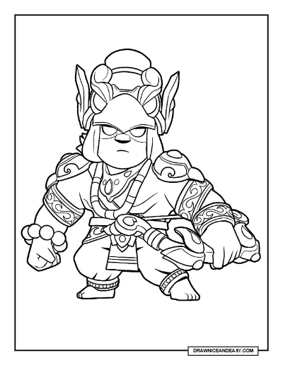Brother Bo is a monk-themed skin for Bo in Brawl Stars, dressing this Epic Brawler in the humble robes and accessories of a warrior monk. Download this free printable PDF coloring page and color Brother Bo in your own serene style. Great for all Bo fans!