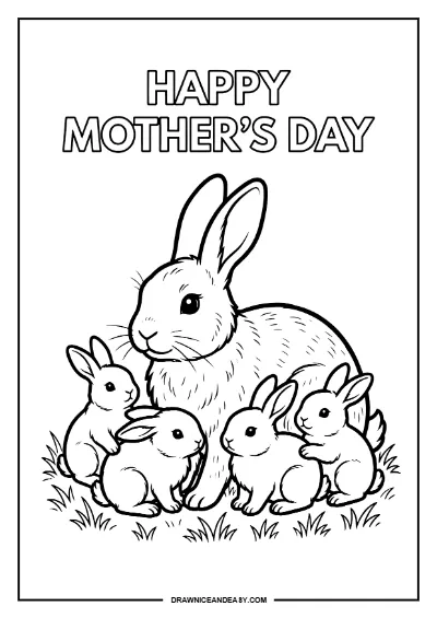 Bunny Mom and Babies Mother's Day Coloring Page Free Printable