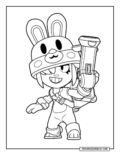 Free Bunny Penny Brawl Stars coloring page – printable PDF! Color the adorable Easter bunny rabbit-themed Epic skin for the Super Rare pirate captain brawler Penny. A floppy-eared and egg-hunting coloring sheet for kids and fans — download free!