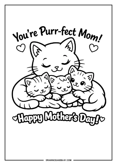 Cute Cat Mom Happy Mother's Day Coloring Page Printable PDF