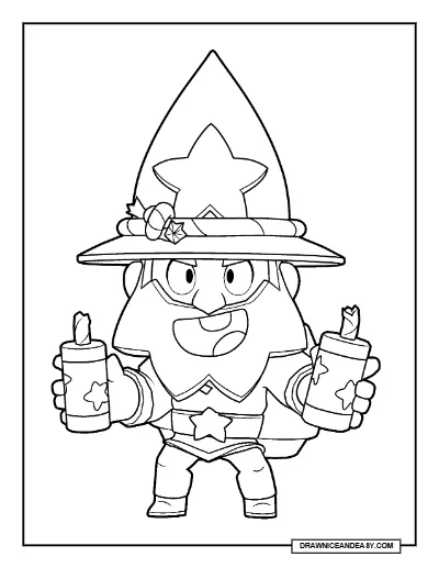 Firecracker Wizard Mike Dynamike Brawl Stars Coloring Page – Free PDF