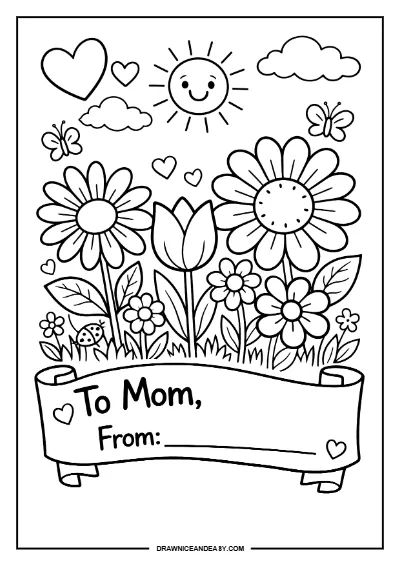 Flowers Happy Mother's Day Card Coloring Page Free Printable PDF
