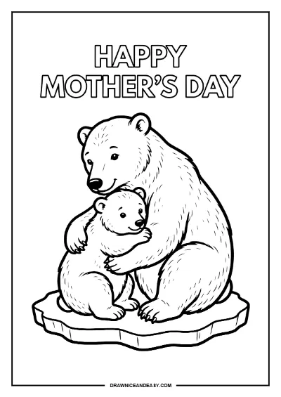 Free Bear Mom Hugging Baby Mother's Day Coloring Page Printable