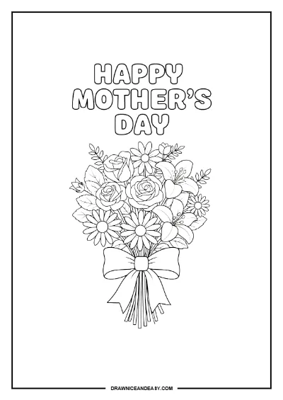 Happy Mother's Day Flower Bouquet Coloring Page Free Printable PDF