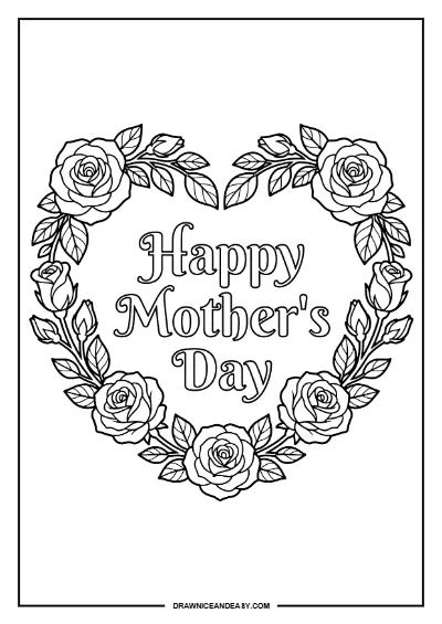Happy Mother's Day Rose Wreath Coloring Page Free Printable PDF
