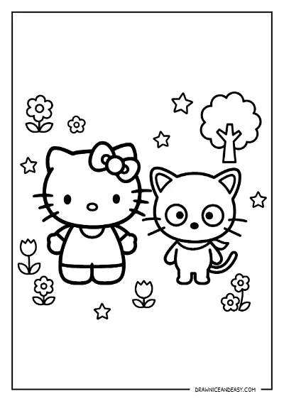 Hello Kitty and Chococat Friends Coloring Page – Free Printable PDF