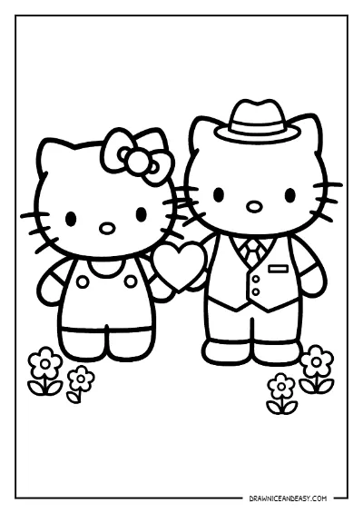 Free Hello Kitty and Dear Daniel couple coloring page — featuring Hello Kitty with her beloved Dear Daniel! Download as PDF and print instantly. Perfect for Hello Kitty romance fans and kids who love Hello Kitty couple coloring pages!