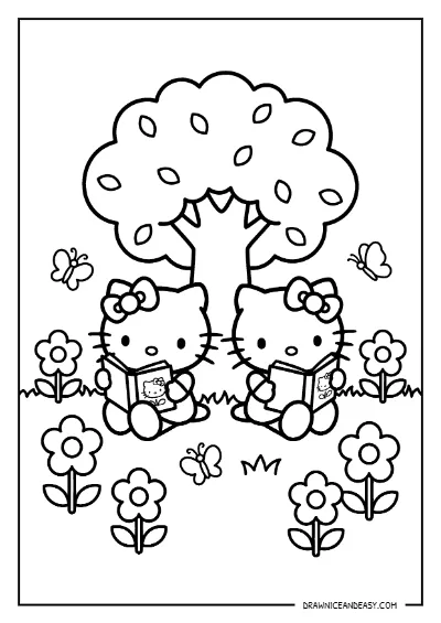 Hello Kitty and Mimmy Garden Nature Coloring Page – Free Printable PDF