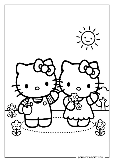Hello Kitty and Mimmy Twin Sisters Coloring Page – Free Printable PDF