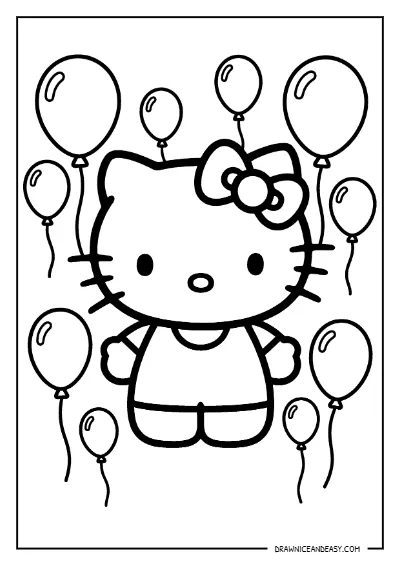 Hello Kitty Balloons Celebration Coloring Page – Free Printable PDF