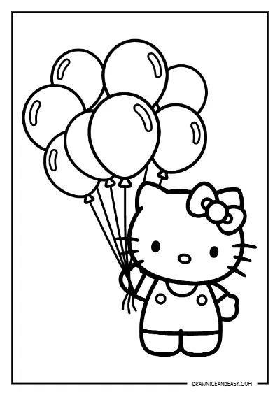 Hello Kitty Balloons Party Coloring Page – Free Printable PDF