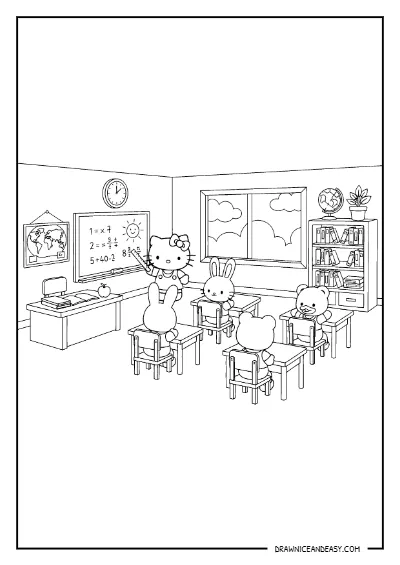 Hello Kitty Classroom School Coloring Page – Free Printable PDF