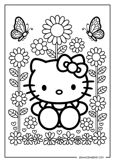 Hello Kitty Flower Frame Background Coloring Page – Free Printable PDF