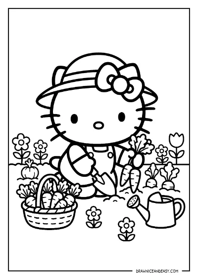 Hello Kitty Gardening Harvesting Carrots Coloring Page – Free Printable PDF