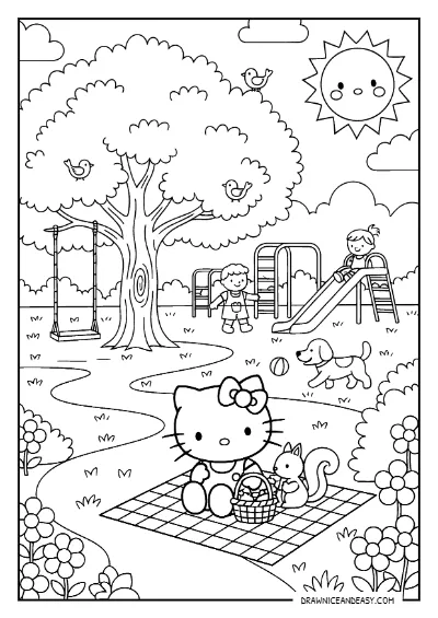Hello Kitty Park Playground Coloring Page – Free Printable PDF