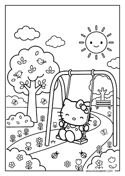 Hello Kitty Playground Slide Coloring Page – Free Printable PDF