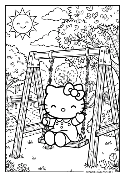 Hello Kitty Playground Swing Coloring Page – Free Printable PDF