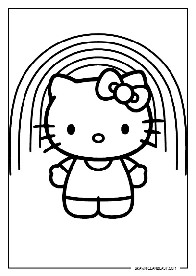 Hello Kitty Rainbow Background Coloring Page – Free Printable PDF