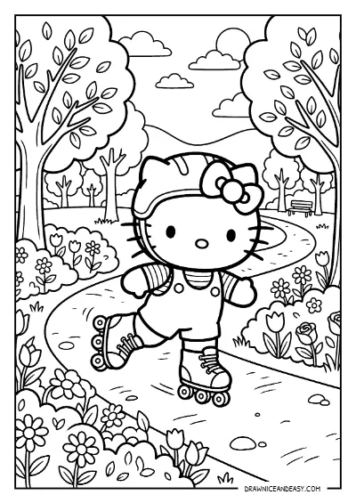 Hello Kitty Rollerblading Park Coloring Page – Free Printable PDF