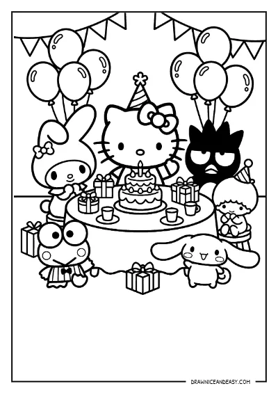 Hello Kitty Sanrio Friends Party Coloring Page – Free Printable PDF