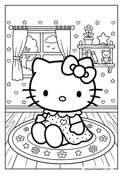 Hello Kitty Sitting Room Cozy Coloring Page – Free Printable PDF