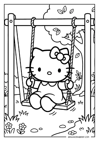 Hello Kitty Swing Playground Coloring Page – Free Printable PDF
