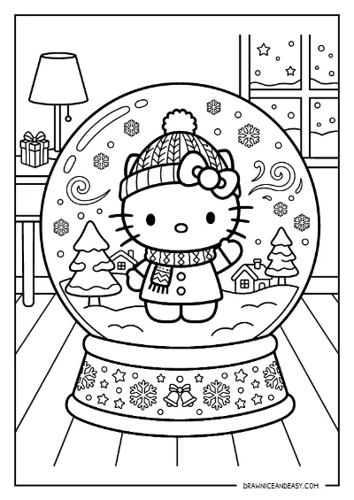 Hello Kitty Winter Snow Globe Coloring Page – Free Printable PDF