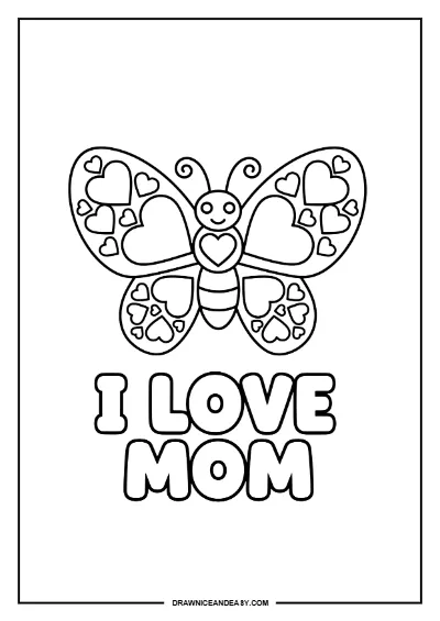 I Love Mom Heart Mother's Day Coloring Page Free Printable PDF