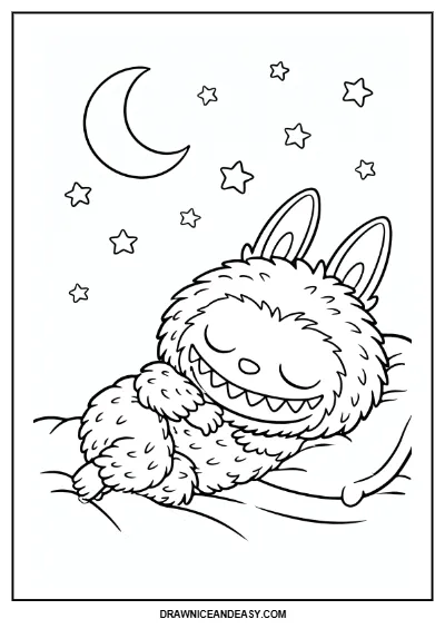Download this adorable Labubu baby sleeping color page for free. A cute and calming coloring page featuring baby Labubu, perfect for young children and collectors.