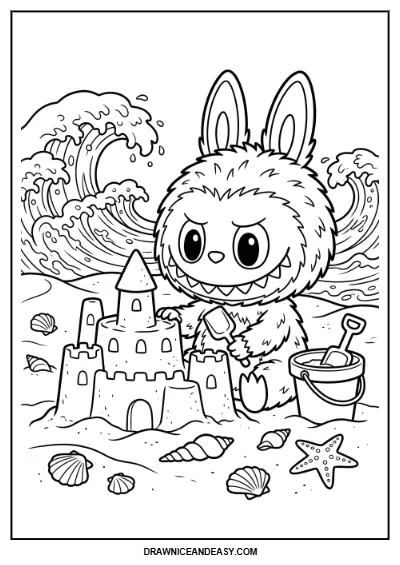 Labubu Coloring Page – Beach Scene