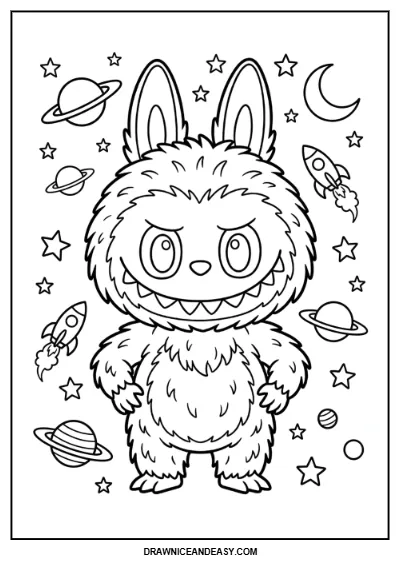 Labubu Coloring Page – Space Adventure
