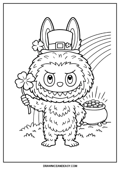 Celebrate St. Patrick's Day with this free Labubu coloring page! A festive and cute printable Labubu coloring page perfect for March holiday activities.