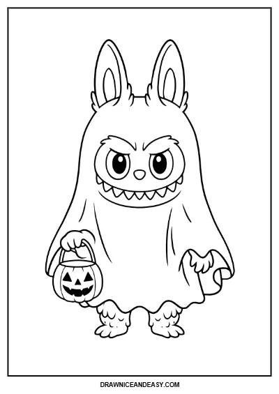 Labubu Halloween Ghost Costume Coloring Page – Free Printable