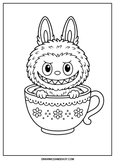 Enjoy this charming free Labubu teacup "have a seat" coloring page. A cute and whimsical printable perfect for Labubu fans who love cozy and creative coloring.