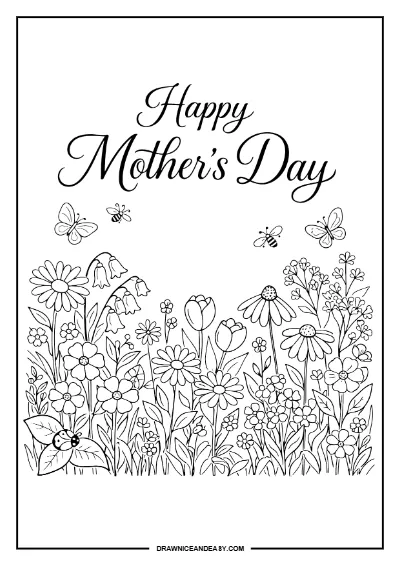 Beautiful flower-themed Mother's Day coloring pages. Free printable PDF.