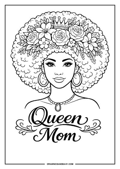 Queen Mom Mother's Day Coloring Page Free Printable PDF