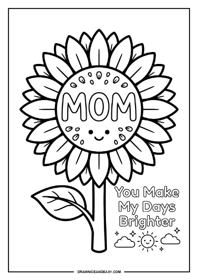 Sunflower Mom Mother's Day Coloring Page Free Printable PDF